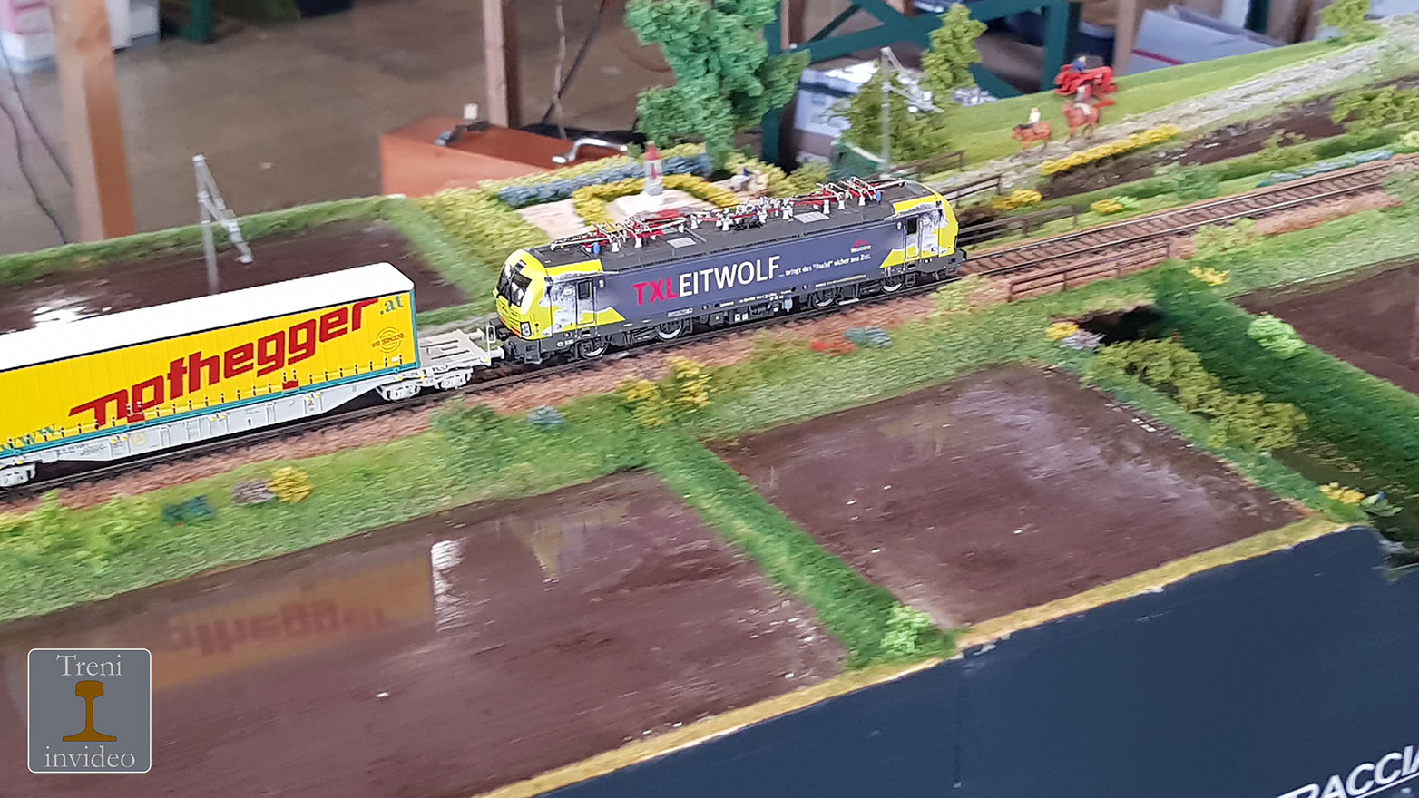 Tanto irreale il convoglio merci affidato alla E402 quanto realistico il paesaggio