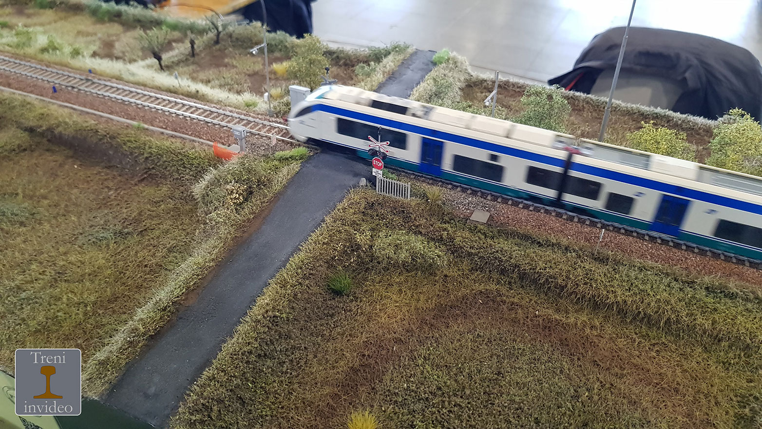 Un Minuetto in livrea XMPR d'origine impegna il passaggio a livello incustodito